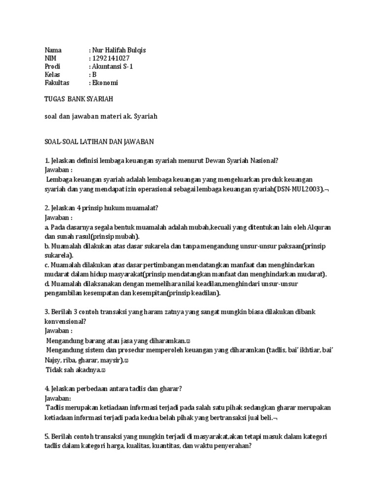 Contoh soal dan jawaban ekonomi syariah. Contoh soal dan jawaban perbankan syariah perbankan umum dan ilmu pengetahuan umum. Jelaskan definisi lembaga keuangan syariah menurut dewan syariah nasional. Bab iii soal soal latihan dan jawaban 1.