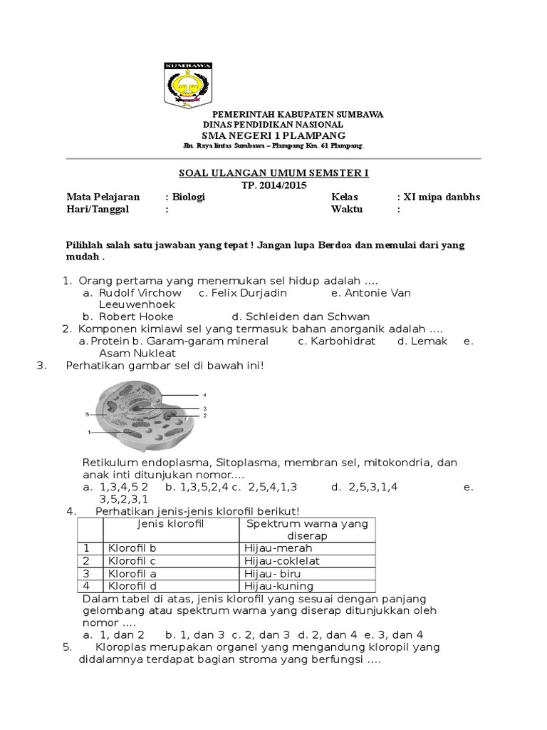 Home info kurikulum materi biologi soal soal biologi soal biologi sma kelas x ulangan tengah semester 1 beserta kunci jawaban. Soal biologi kelas. Berikut ini kumpulan latihan soal pilihan ganda 15 soal mapel biologi tentang sel untuk sma kelas xi semester 1.